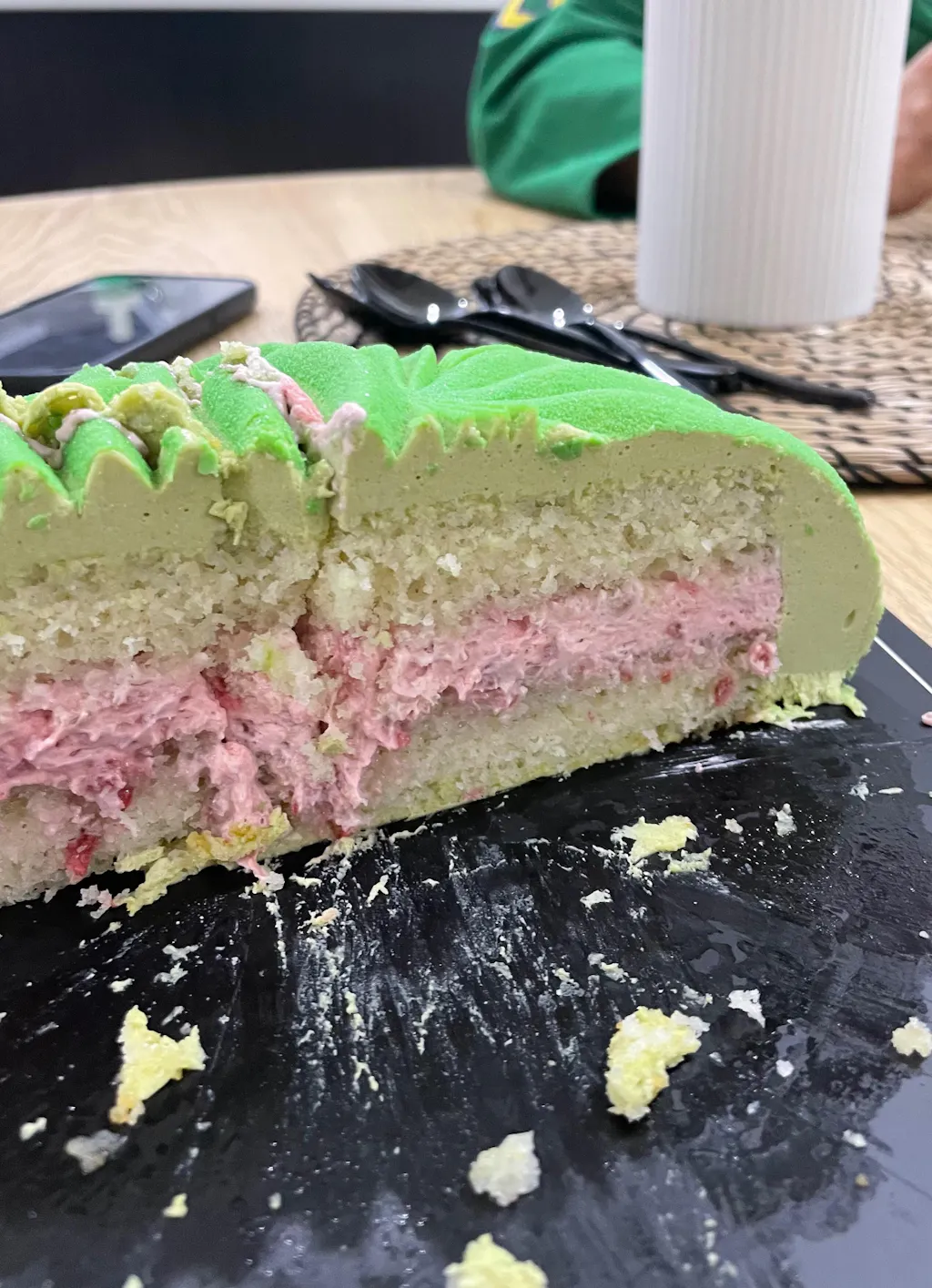 Order now for matcha cake delivery in Sydney or pick-up at our Homebush location and enjoy the ultimate matcha-raspberry indulgence!